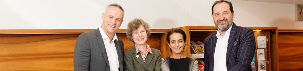 Die Klinikleitung des neuen Rehazentrums St.Gallen Christian Schlücke, Leiter Therapien, Klinikdirektor René Alpiger, Adeela Mirza, Leiterin Pflege, und Dr. med. Daniel Büche, MSc, Leiter Ärztlicher Dienst, mit Dr. Till Hornung, CEO der Gruppe Kliniken Valens. (v.l.n.r.)