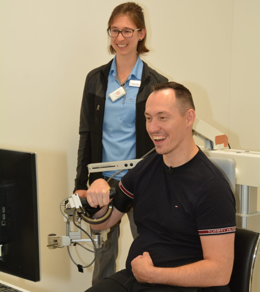 Dr. med. Björn Janssen (Rehazentren Valens & Walenstadtberg) gehört seit 2017 zum Behandlungsteam von Bettina Immler und berät sie in Ergonomiefragen, kümmert sich um Kostengutsprachen für Langzeit-Physiotherapie und unterstützt die Patientin bei neu auftretenden Gelenkproblemen.